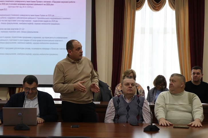 Про реалізацію Комплексної програми з енергозбереження та ефективного використання паливно-енергетичних ресурсів на 2023-2027 роки у Тернопільському національному технічному університеті імені Івана Пулюя доповідав керівник відділу перспективних технологій та енергоменеджменту Григорій ХИМИЧ. Він наголосив на організаційних і технічних заходах, які впроваджені університетом у 2025 році, що дало значний економічний ефект. Доповідач проаналізував дані щодо споживання енергоресурсів в університеті та фахових коледжах.
