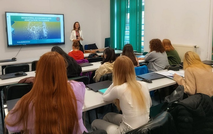 У рамках візиту Ірина МАРКОВИЧ провела лекції з курсу «Поведінкова економіка» для студентів університету. Слухачі мали змогу зануритися в сучасні економічні підходи до прийняття рішень, дізнатися про вплив когнітивних упереджень та поведінкових моделей на ринок і суспільство.