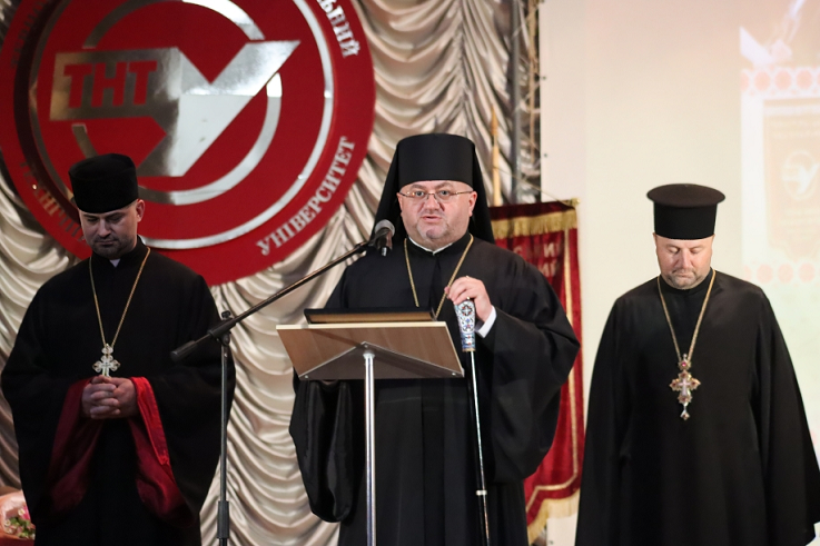 Першими університетську спільноту та ректора Миколу Митника привітали високопреосвященні владики — Православної Церкви України митрополит Тернопільський і Кременецький Нестор (Писик) та Української Греко-Католицької Церкви єпископ-помічник Тернопільсько-Зборівський Володимир Фірман, а також духовний капелан університету отець Ярослав Шевчук.