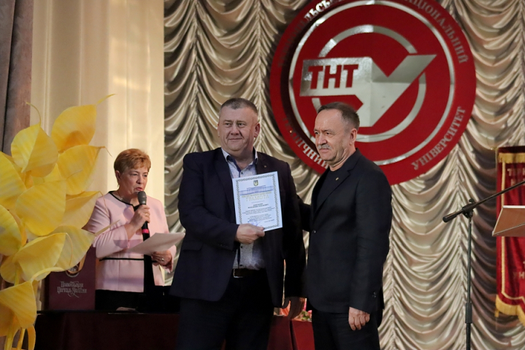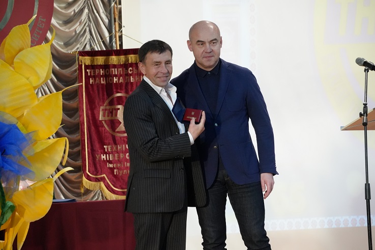 Академік НАН України, голова Західного наукового центру НАН та МОН України, директору Фізико-механічного інституту ім. Г.В. Карпенко НАН України, голова наглядової ради ТНТУ ім.І.Пулюя Зіновій Назарчук привітав освітян зі святом та за дорученням Президії НАН України вручив нагороду трудовому колективу університету. «Сьогодні ми відзначаємо ювілейну дату з дня заснування закладу, який більше шести десятиліть залишається провідним центром педагогічної думки, наукових відкриттів та технічних ідей. За цей час ви пережили епохи змін, випробування історії, але не лише зберегли найкращу педагогічну і наукову спадщини і досвід, а й примножили їх. Бажаю університету нових звершень, а кожному Пулюївцю — натхнення, гордості за свою alma mater та сили творити майбутнє», — зазначив Зіновій Назарчук у своєму виступі.