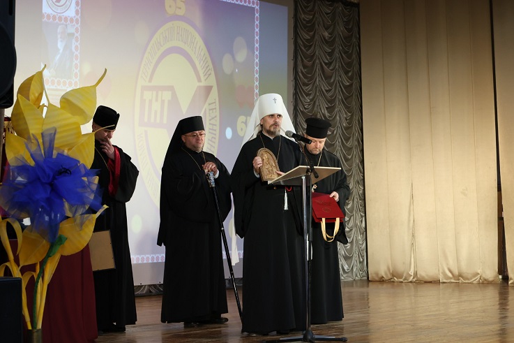 У привітальній промові митрополит Тернопільський і Кременецький Нестор (Писик) підкреслив вагомість університету та сподвижницьку працю викладачів, науковців, аспірантів та студентів вишу: «65-ліття Тернопільського національного технічного університету імені Івана Пулюя — це час, коли можна глянути в минуле на те, що вже здобуто і що зроблено і з впевненістю дивитися в майбутнє, тому що попереду ще дуже багато треба зробити і можна зробити, особливо в сьогоднішній час, коли Україна, як ніколи потребує нових технологій і винаходів. Україна завжди мала талановитих людей, які рухали науку не тільки в Україні, а й далеко за її межами, на честь одного з таких людей Івана Пулюя і названо університет і таких видатних українців дуже багато, але для того щоб розкрити їхні таланти потрібне відповідне освітнє середовище, потрібні талановиті викладачі, науковці, добрі порадники, які допоможуть студенту розкрити його потенціал та показати ту користь, яку він може принести Україні, тому Тернопільський національний технічний університет є дійсно тим університетом, тією базою, на якій зростають дуже багато сьогоднішніх українських науковців».