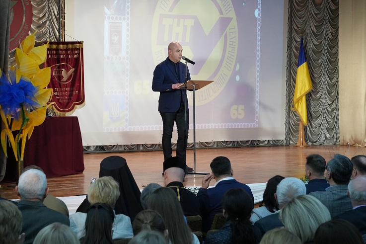 Начальник Тернопільської обласної військової адміністрації В’ячеслав Негода подякував колективу Університету за розвиток науки, освіти та підтримку країни в умовах війни та наголосив: «65-річчя університету — знакова дата в історії нашої області та всієї України. Це про багаторічну наполегливу працю та високі досягнення у сфері освіти, науки та інновацій, про зростання, новаторство та відданість справі, про підготовку висококваліфікованих фахівців. Сьогодні університет — це простір можливостей для здобувачів освіти. Це місце, де виховуються ті, хто формує майбутнє нашої нації — нове покоління фахівців, здатних мислити системно, інноваційно. Головне, щоб тут здобували не лише знання, а й ті компетенції, які потрібні країні сьогодні. Адже технічні знання — основа для розвитку економіки та інновацій, що наближають нас до перемоги. Важливо налагодити співпрацю з підприємствами та виробниками, щоби наукові розробки університету знаходили широке застосування на практиці».