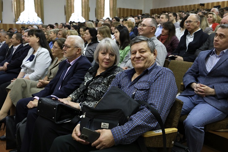 З особливою радістю Тернопільський національний технічний університет імені Івана Пулюя привітав народний депутат України, заступник голови Комітету з питань бюджету Верховної Ради України, заступник голови Наглядової ради ТНТУ ім.І.Пулюя, доктор економічних наук, професор Володимир Гевко: «Для мене Тернопільський національний технічний університет імені Івана Пулюя — це не просто навчальний заклад, а особливе місце. Це моя Alma mater, де пройшли важливі роки мого професійного становлення, де я мав честь викладати, а нині бути поруч, як заступник Голови наглядової ради. Тернопільський національний технічний університет імені Івана Пулюя — це потужний університет, який з року в рік демонструє високий рівень підготовки фахівців, займає провідні позиції серед технічних вишів України та робить вагомий внесок для нашої держави, — наголосив Володимир Гевко. — Основа успіху університету — це праця його викладачів, новаторство в освіті й тісна співпраця колективу, що разом забезпечують якісну підготовку майбутніх професіоналів для потреб України. Щиро дякую всім, хто творить сьогодення університету, хто навчає, досліджує, розвиває. Бажаю подальших успіхів, наснаги, нових наукових досягнень та невпинного поступу у вихованні нових поколінь фахівців».