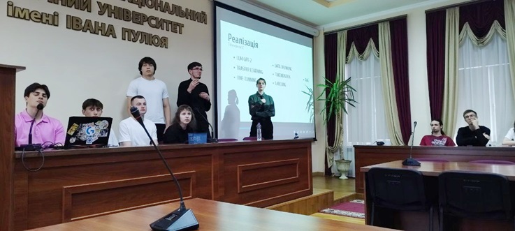 Перший науково-дослідний проект «Розробка інтелектуалізованої програмної системи на основі RAG-архітектури» представили автори: Бессараб Борис, Герасимчук Ярослав, Добротвор Богдан, Дубанич Єва, Завтрак Дар'я, Кичан Валентин, Манзій Артем (студенти гр. СП-21 та СП-22). В проекті презентовано розробку інтелектуалізованої діалогової програмної системи призначеної для генерації відповідей на питання абітурієнтів, що планують вступати у ЗВО, зокрема, на прикладі ТНТУ імені Івана Пулюя. В основу архітектурного рівня розробки інтелектуалізованої діалогової системи покладено гібридизацію інтелектуалізованого інформаційно-пошукового агента та генеративного штучного інтелекту.