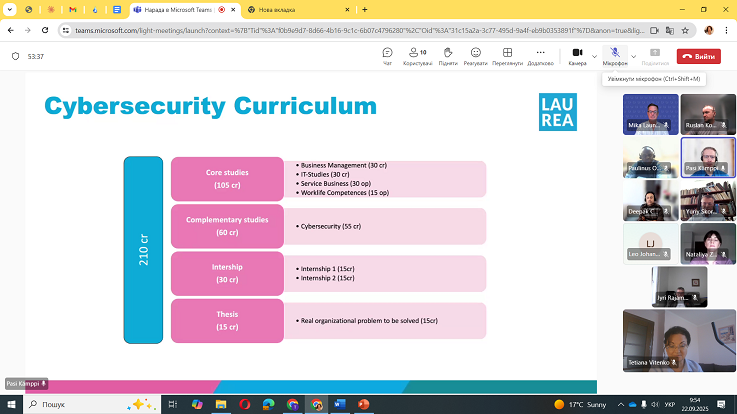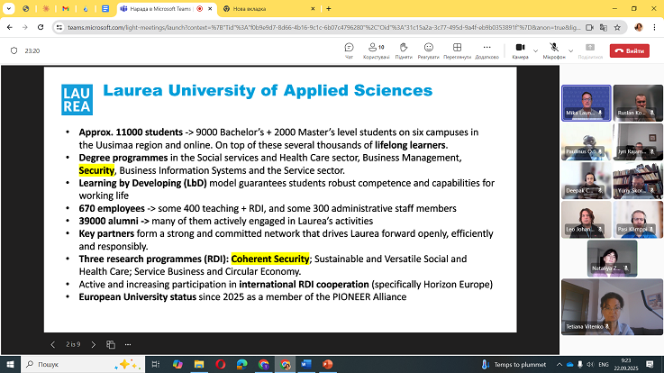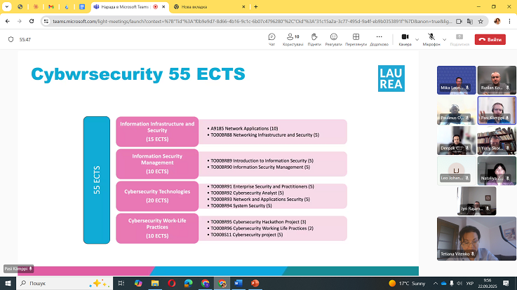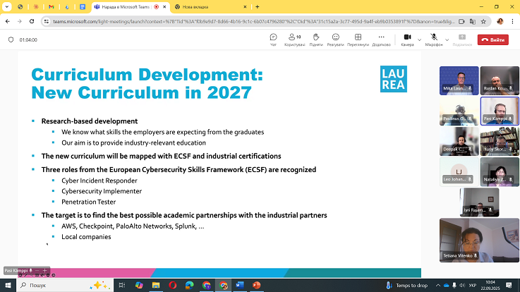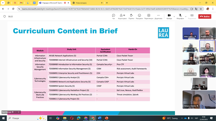 Університет представляли завідувачка кафедри кібербезпеки Наталія Загородна, доценти кафедри кібербезпеки Руслан Козак і кафедри фізики Юрій Скоренький, а також професорка кафедри обладнання харчових технологій Тетяна Вітенько — координаторка робочої групи від ТНТУ. Від Laurea University of Applied Sciences долучилися Pasi Kämppi, Paulinus Ofem, Leo Johannesberg, Deepak Chhetri та координатор Mika Launikari.