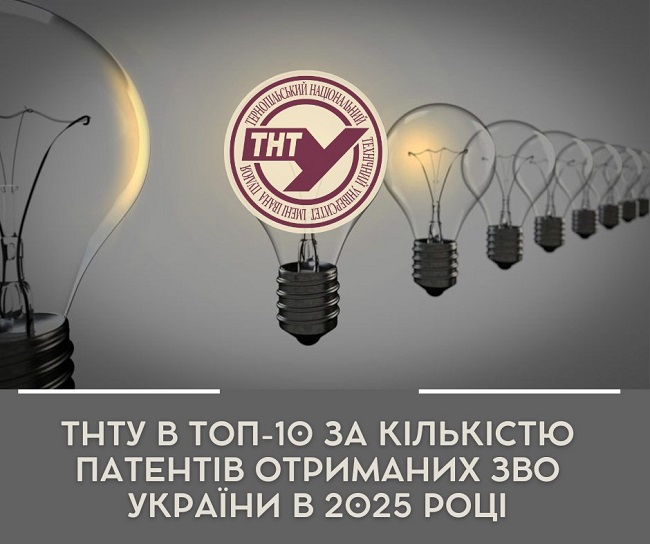 Тернопільський національний технічний університет імені Івана Пулюя увійшов до десятки лідерів з-поміж закладів вищої освіти з найвищою винахідницькою активністю за інформацію Українського національного офісу інтелектуальної власності та інновацій щодо кількості патентів отриманих ЗВО України за І півріччя 2025 року.