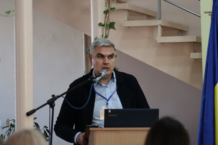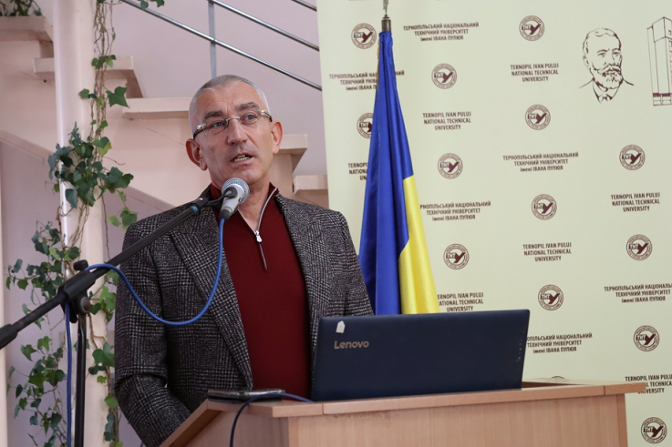 Першим на пленарному засіданні виступив засновник кафедри харчової біотехнології і хімії, д-р біол. наук, професор ЮКАЛО Володимир Глібович з доповіддю «Відкриття та етапи становлення спеціальності «Харчові технології» в Тернопільському національному технічному університеті імені Івана Пулюя».