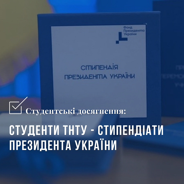 Студентам-відмінникам Тернопільського національного технічного університету імені Івана Пулюя призначено академічні стипендії Президента України на I семестр 2025/2026 навчального року. Про це йдеться у наказі Міністерства освіти і науки України № 1193 від 29 серпня 2025 року «Про призначення академічних стипендій Президента України на І семестр 2025/2026 навчального року».