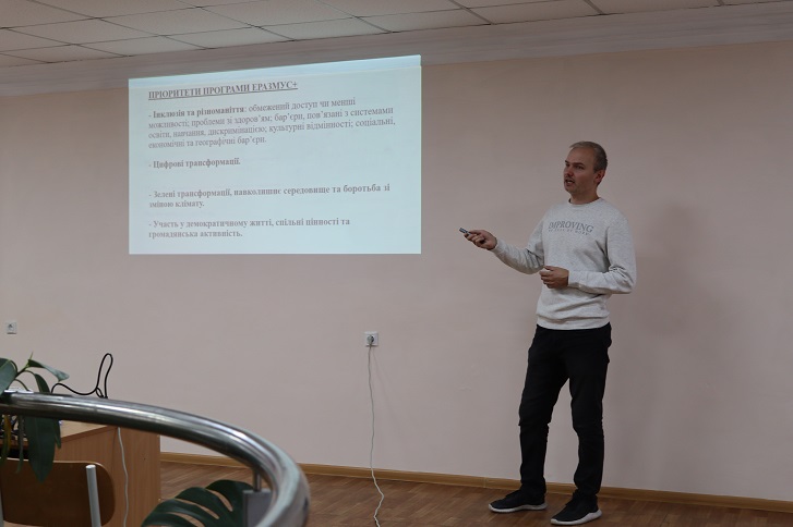 Першу тренінгову сесію провів керівник відділу міжнародного співробітництва, доцент Віталій Мочарський. Учасники дізналися про сучасні тренди розвитку міжнародних освітніх проєктів, ознайомилися з картою можливостей для співпраці з іноземними партнерами та взяли участь у практикумі з аналізу анотацій успішних грантів.