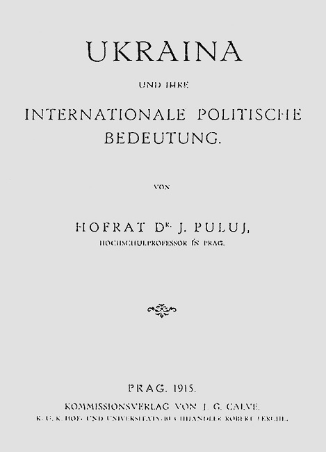 5 травня 1915 р. у Празі Іван Пулюй на зустрічі з українською громадою звернувся до присутніх з такими словами: «Шановні пані і панове, милі земляки! Сердечно витаю Вас в тій салі, де я від трийцять років викладав перед учениками моїми спершу науку фізики і електротехніки, а тепер викладаю електротехніку. Але сьогодні запросив я Вас не на електротехнічний відчит. Електротехніка, тая найновіша і величава наука, на котрої полі і я чимало потрудився, близька і дорога моєму серцю, але ще близша і дорожша наша мова, а література і доля народа нашого». Про глибокий сенс цих слів йтиметься нижче.