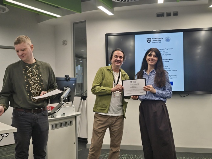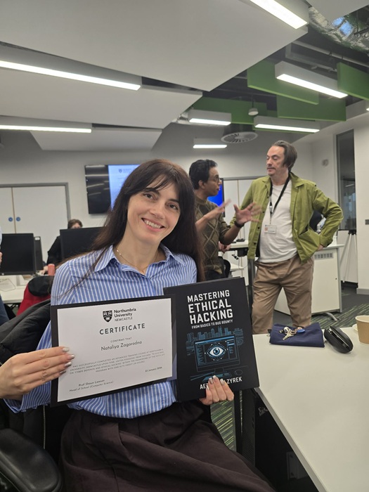 Під час візиту до Університету Нортумбрії з 19 січня по 23 січня 2026 року Наталія Загородна успішно завершила курс «Кіберзахист та етичний хакінг» та отримала відповідний сертифікат.
