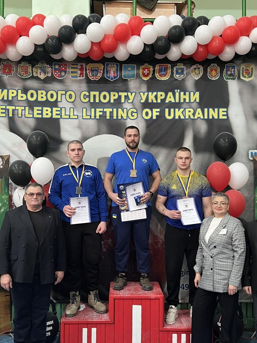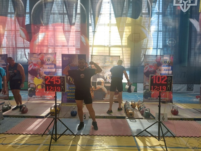 Вітаємо В’юка Дениса, який у вправі Р-12 («Ривок з довільною зміною рук протягом 12 хвилин») з результатом 245 підйомів виборов перше місце серед юніорів та виконав норматив майстра спорту України. Також він посів третє місце в естафеті у поштовху довгим циклом серед юніорів і третє місце в естафеті у поштовху серед чоловіків.