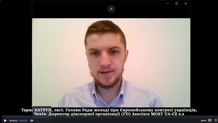 Заступник Голови Ради молоді при Європейському конгресі українців, директор діаспорної організації Asociace MOST UA-CZ z.s Тарас КАТРУН акцентував увагу на зростаючій ролі молоді у процесах міжнародної взаємодії, підкреслив значення громадських ініціатив та молодіжних проєктів у зміцненні зв’язків між країнами, а також у формуванні активної громадянської позиції.