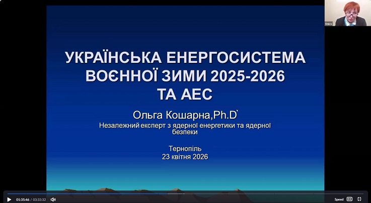 Ольга КОШАРНА (канд. хім. наук, незалежний експерт з ядерної енергетики та безпеки, Україна) у доповіді «Українська енергосистема воєнної зими 2025–2026 та АЕС» детально проаналізувала стан і виклики функціонування енергетичної системи України в умовах воєнного часу, акцентуючи увагу на ролі атомної енергетики у забезпеченні енергетичної стійкості.