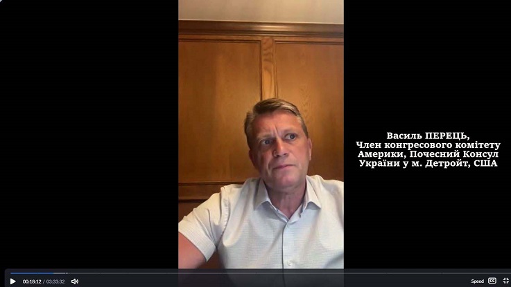 Член конгресового комітету Америки, Почесний Консул України у місті Детройт Василь ПЕРЕЦЬ у своєму виступі підкреслив важливість сталої міжнародної підтримки України, зокрема з боку США, та наголосив на вагомій ролі української діаспори у зміцненні двосторонніх відносин, гуманітарній допомозі та адвокації інтересів України на міжнародній арені.